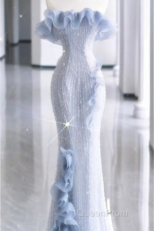Mermaid Strapless Blue Sequin Evening Prom Dresses Evening Dresses