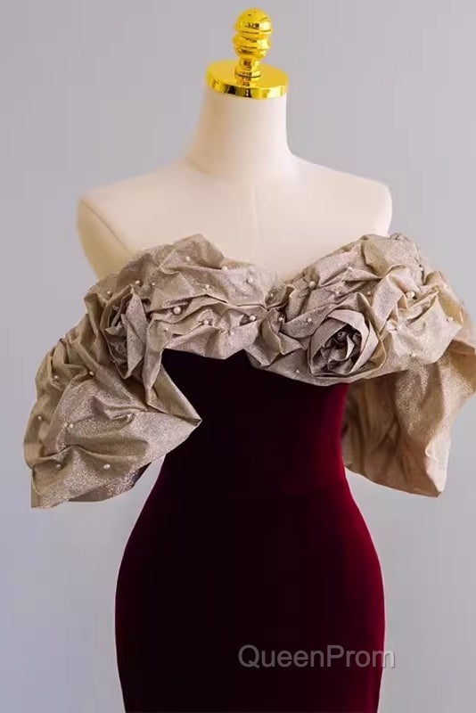 Mermaid Strapless Wine Red Long Evening Prom Dresses