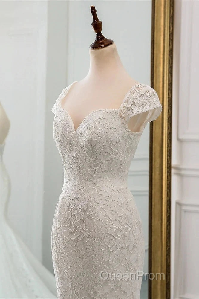 Mermaid Sweetheart Lace Long Wedding Dresses Bride Gown Cap Sleeves