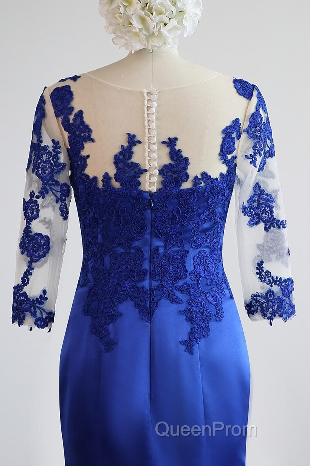Mermaid / Trumpet Evening Gown Elegant Dresses Formal Floor Length Half Sleeve Illusion Neck Satin With Pleats