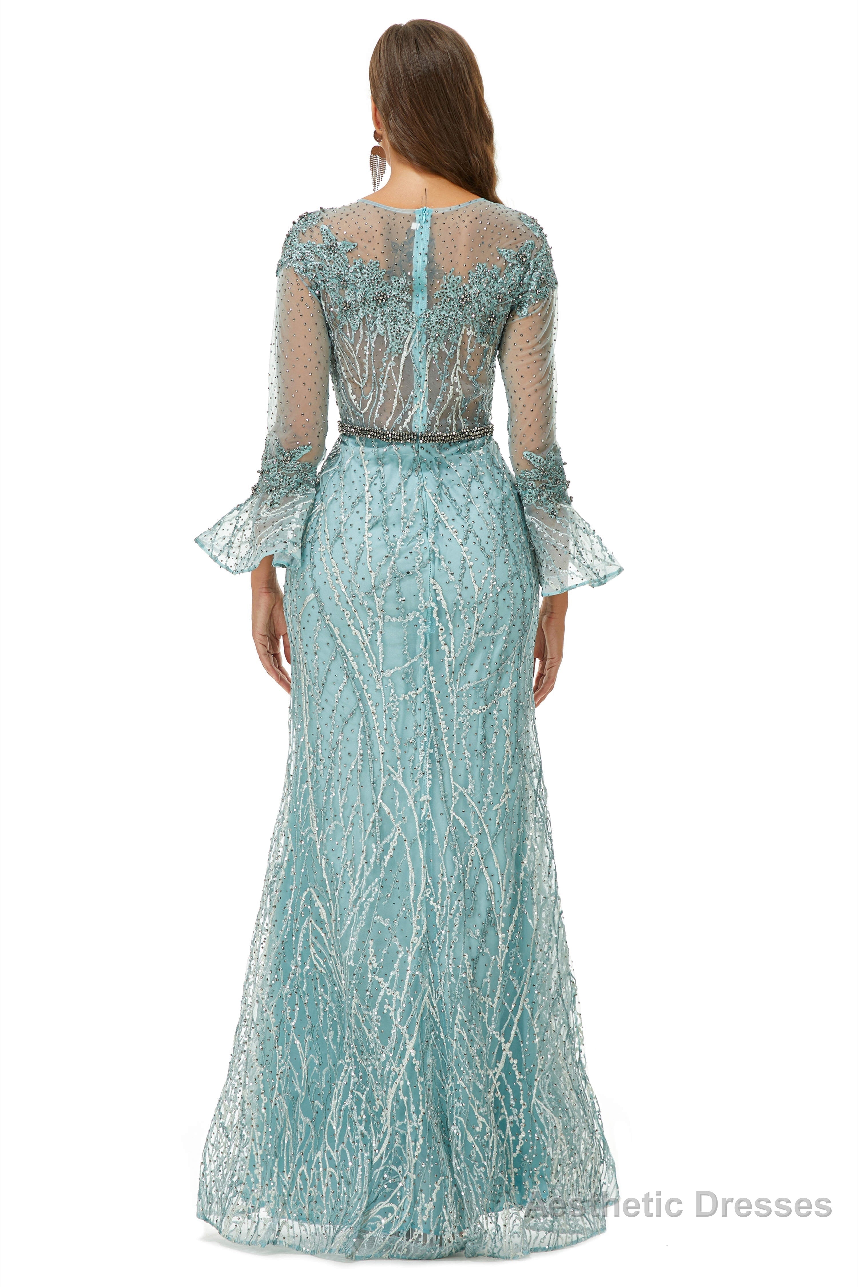 Mermaid Tulle Beading Long Sleeve Prom Dresses