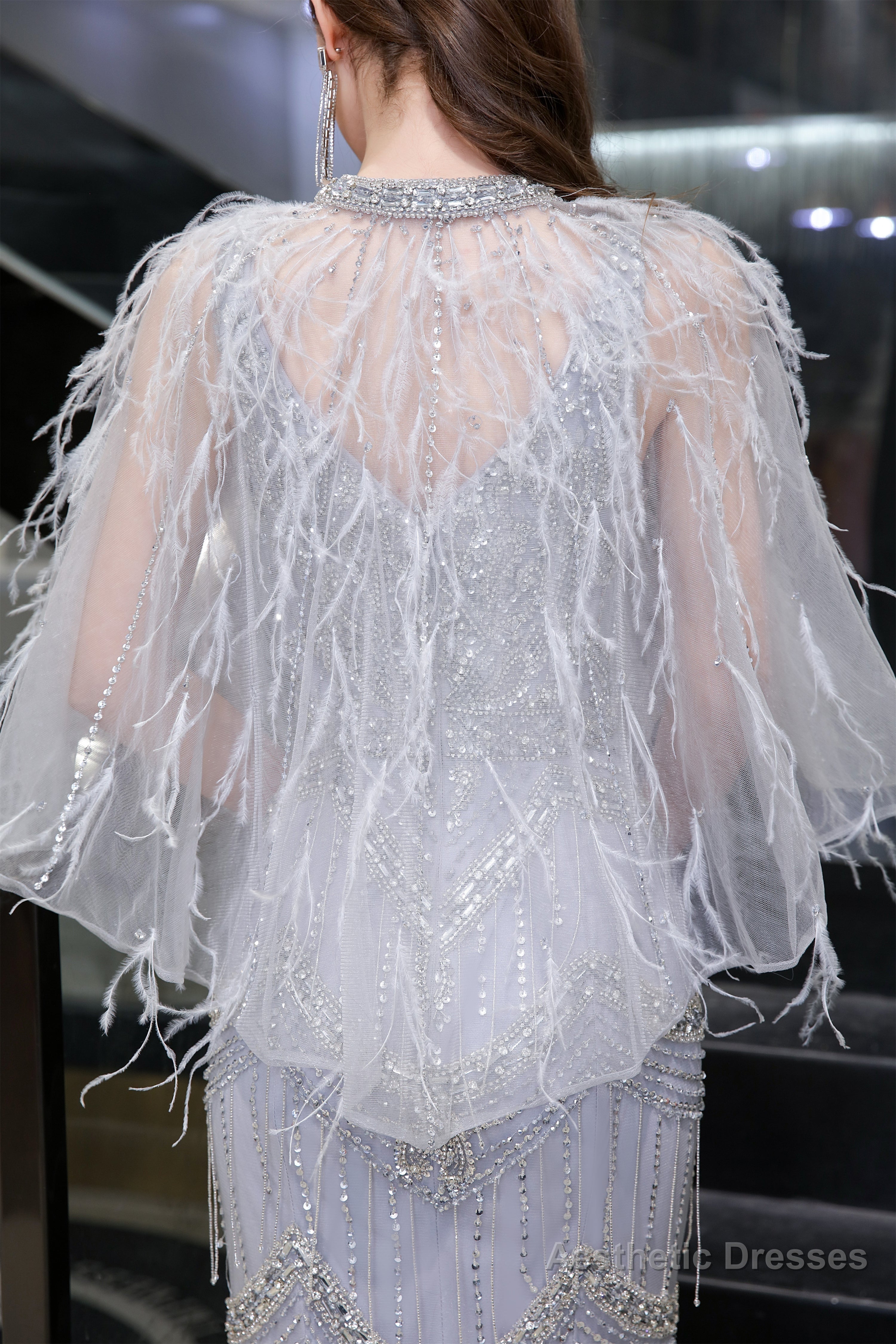 Mermaid V Neck Sleeveless Floor Length Prom Dresses With Crystal Beading