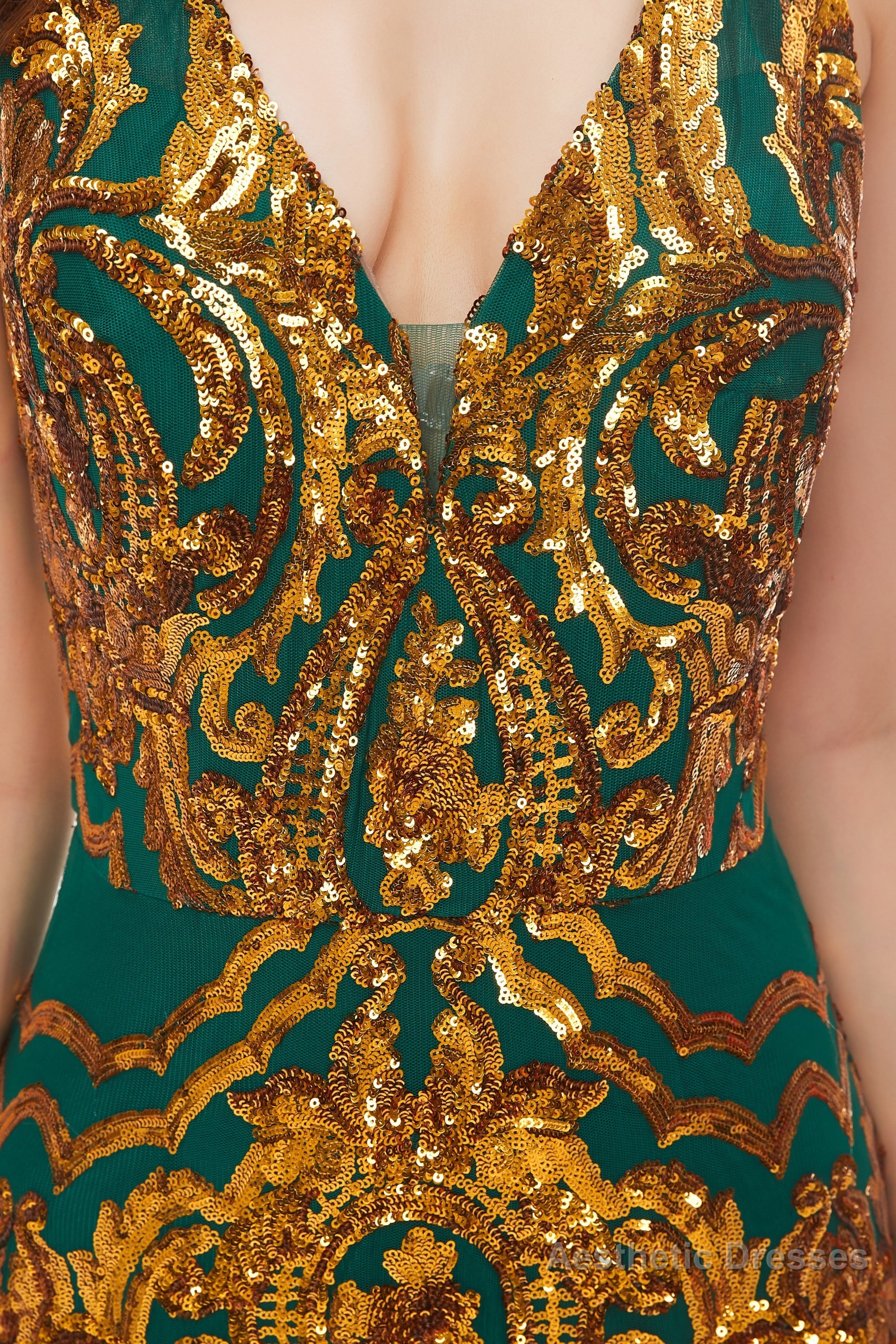 Mermaid V Neck Sleeveless Sequind Long Prom Dresses