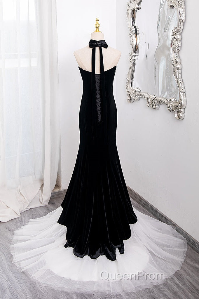 Mermaid Velvet Tulle Black Long Evening Prom Dresses, Black Long Formal Dresses