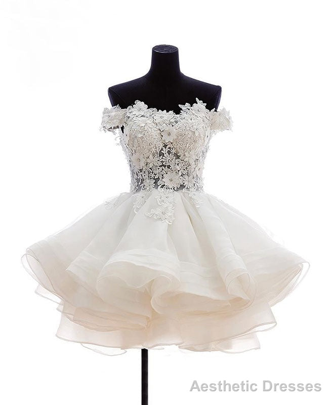 Mini Tulle Lace Short Prom Dress, Lace Cute Homecoming Dress