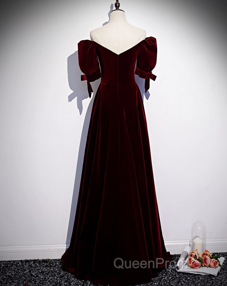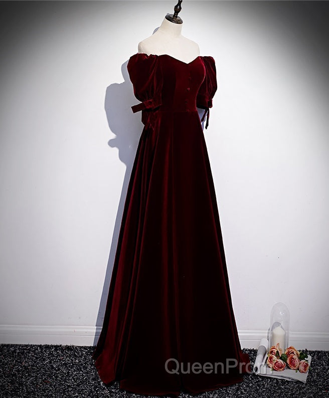 Modest Charming Burgundy Long Evening Prom Dresses Vintage Evening Dresses With Bowknot