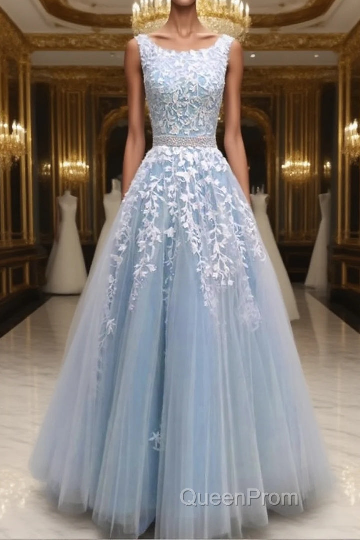 Modest Evening Prom Dresses Tulle Cap Sleeves Lace Embroidery