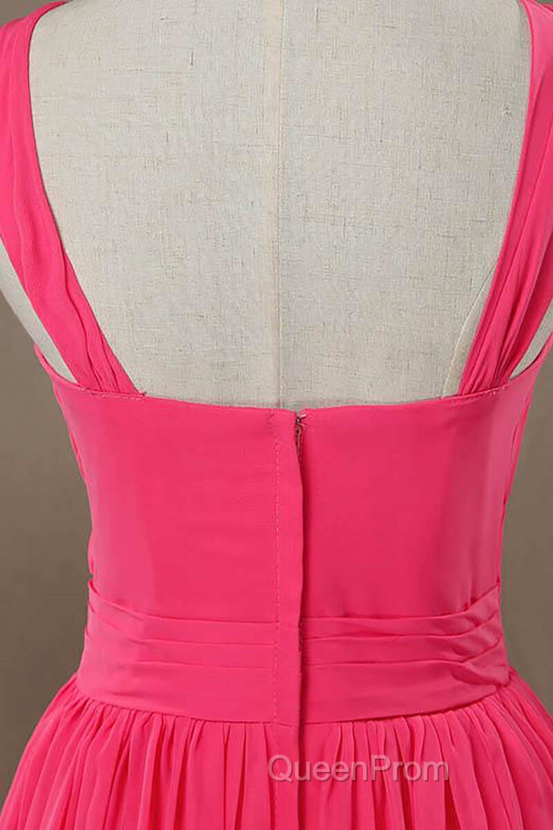 Neon Pink Halter Knee Length Bridesmaid Dresses