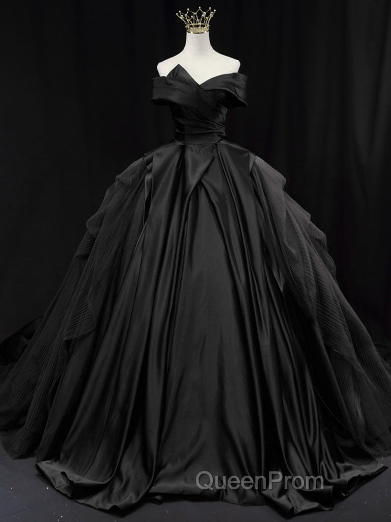 Off Shoulder Tulle Satin Blue Long Evening Prom Gown, Blue Long Evening Dresses