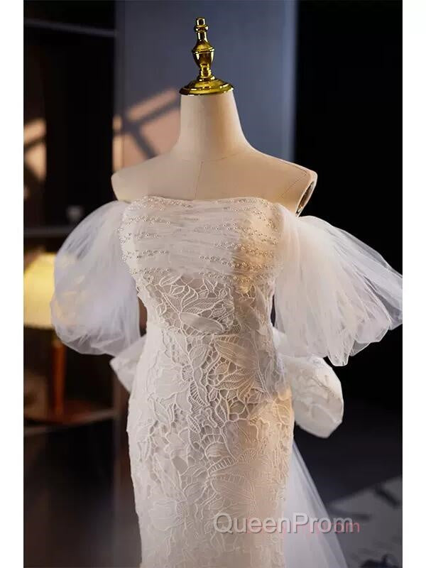 Off The Shoulder Lace Trumpet Mermaid Wedding Dresses With Bow