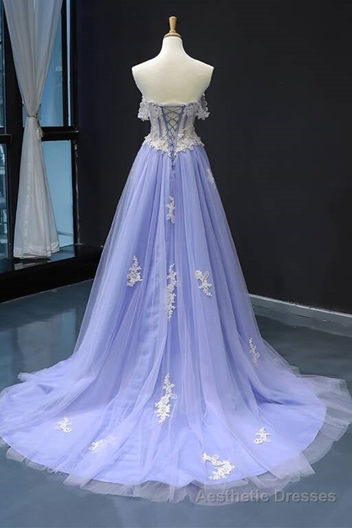 Off the Shoulder Lavender and Lace Appliques Long Formal Dress