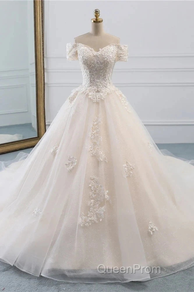 Off-The-Shoulder Wedding Gown With Lace Appliques
