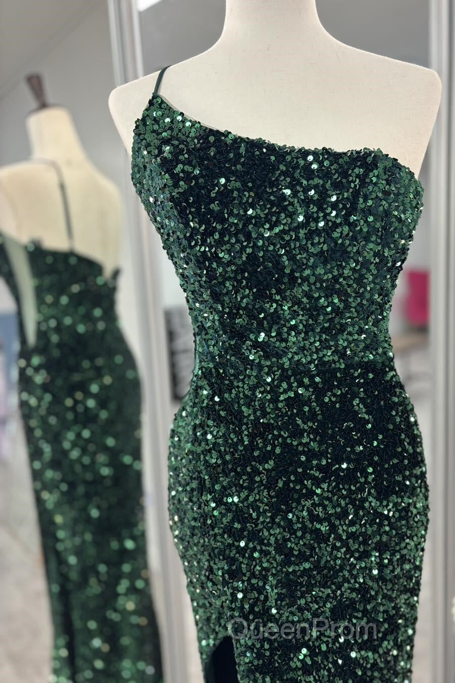 One Shoulder Long Emerald Green Evening Prom Dresses Mermaid Sequin