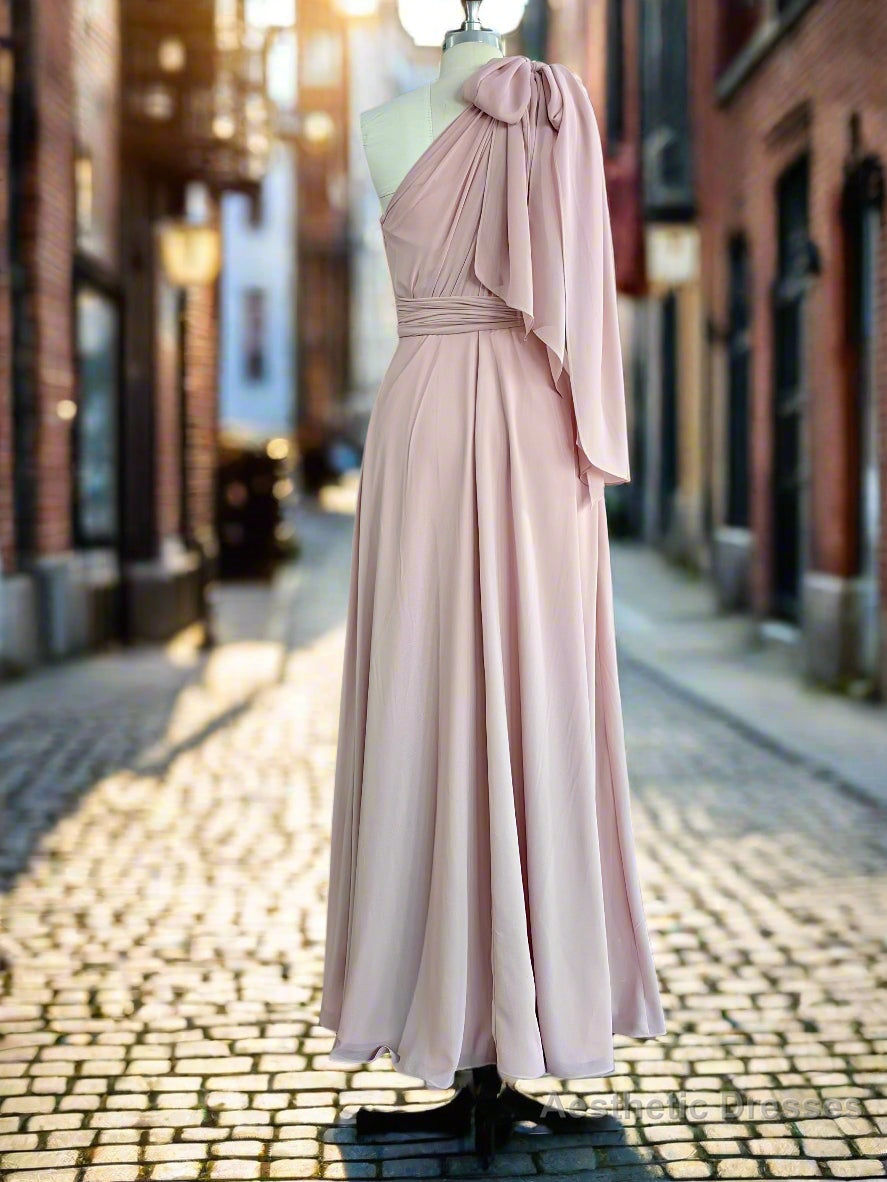 One Shoulder Pink Rustic Bridesmaid Dress Long Maxi Wedding Dress