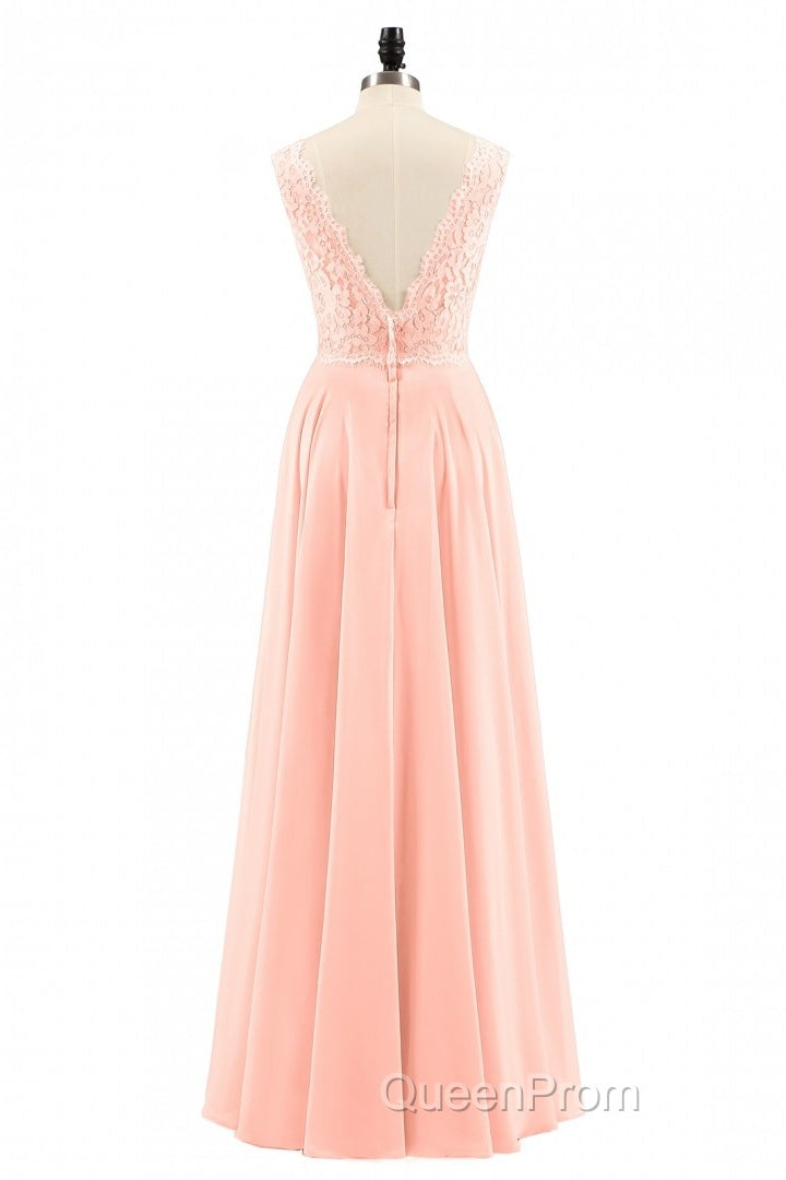 Pearl Pink Backless A-Line Long Bridesmaid Dresses