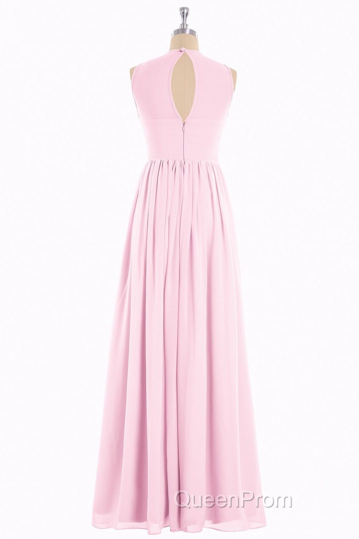 Pink Chiffon Halter Cutout Back A-Line Long Bridesmaid Dresses