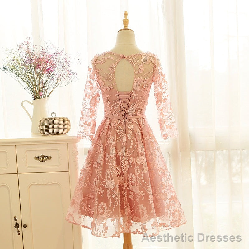 Color:Pink,Hemline:KneeLength,Back Details:Lace-up
