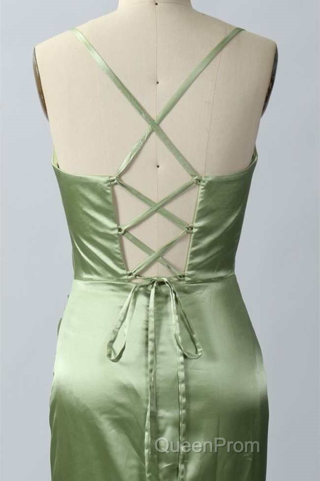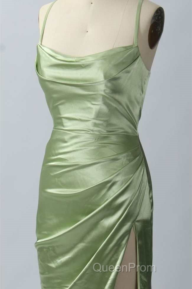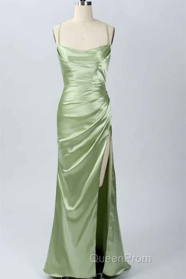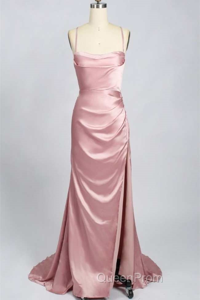 Pink Scoop Neck Lace-Up Back Long Formal Dresses with Slit