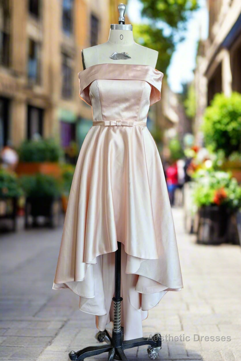 Pink Short Homecoming Dress Off The Shoulder Satin High Low Prom Dress