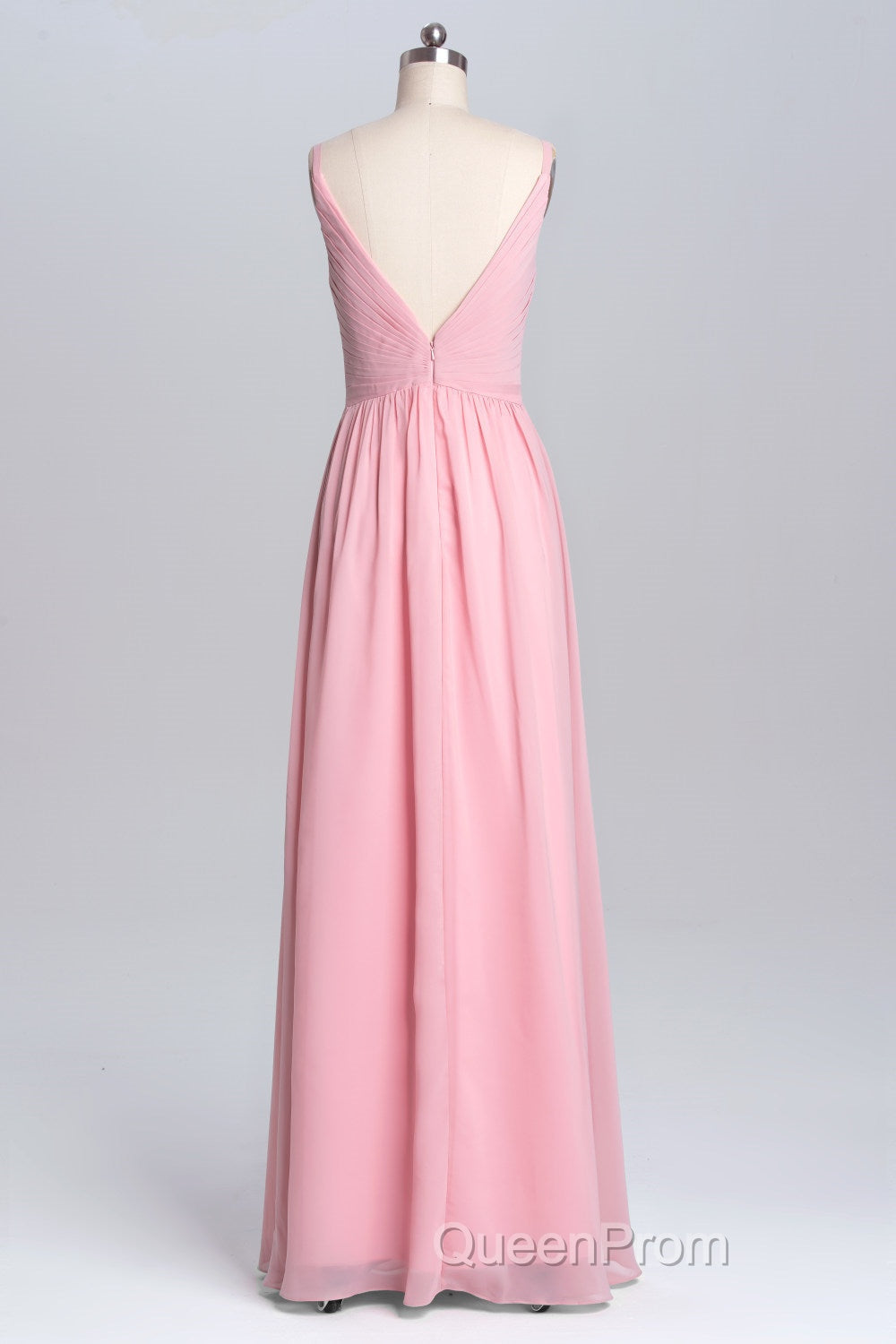Pink Straps A-line Pleated Long Bridesmaid Dresses