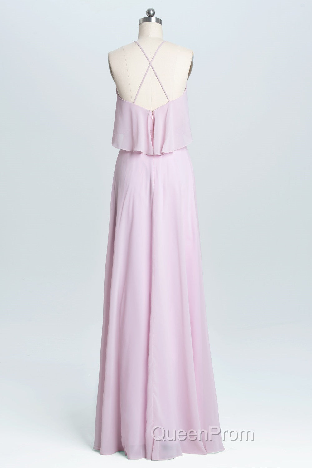 Pink Straps Flounce Chiffon A-line Long Bridesmaid Dresses