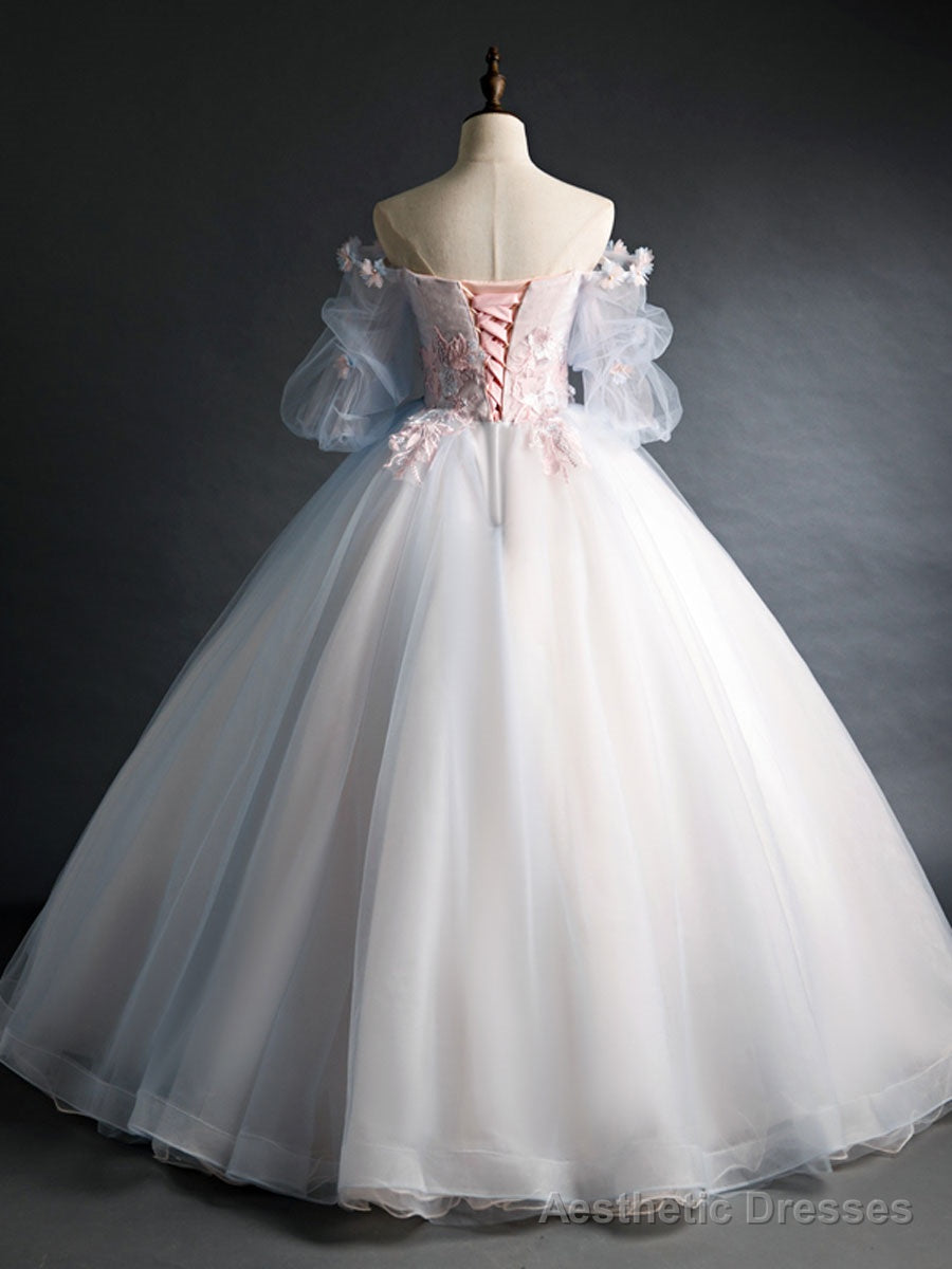 Pink Tulle Lace Applique Long Prom Dress, Tulle Lace Sweet 16 Dress