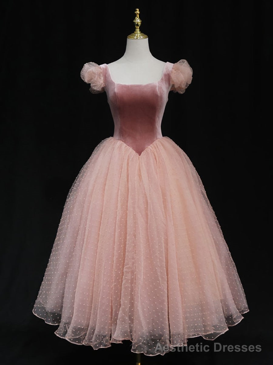 Pink Tulle Short Prom Dress, Pink Tulle Puffy Homecoming Dress