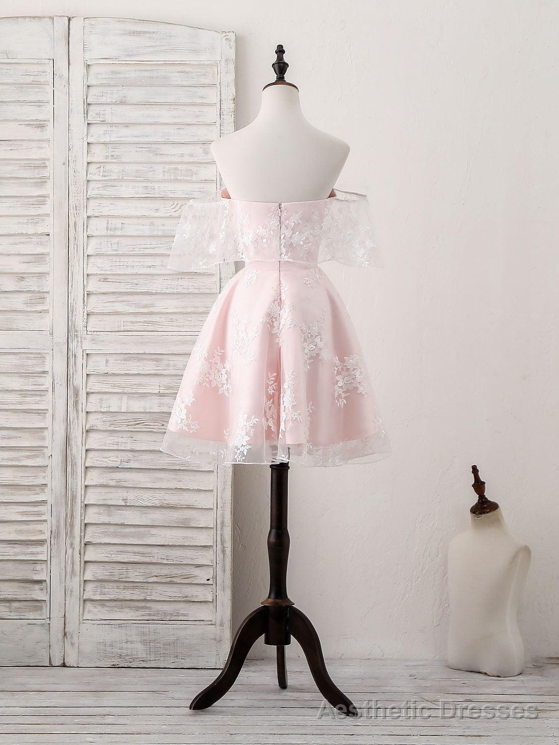 Pink Tulle Sweetheart Lace Short Prom Dress, Pink Homecoming Dress
