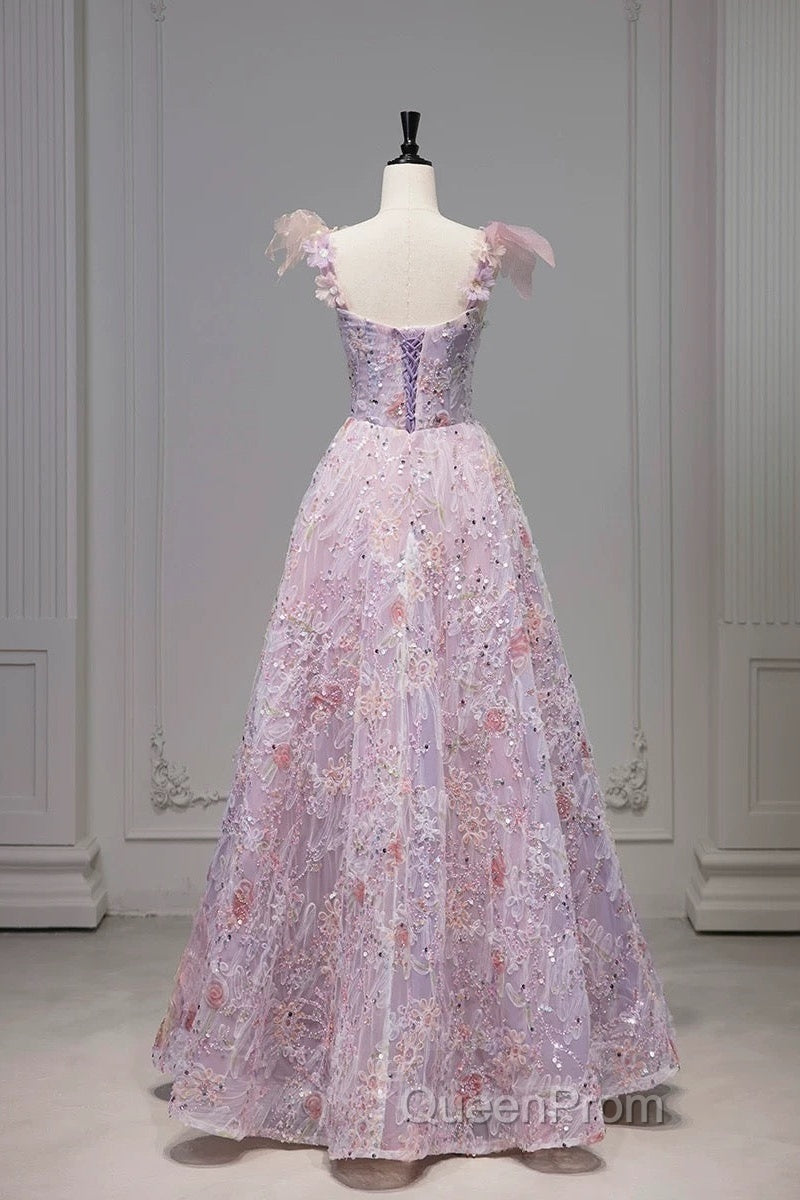 Pretty A Line Spaghetti Straps Pink Floral Long Length Evening Dresses Evening Prom Dresses