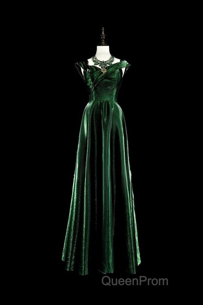 Pretty A Line Sweetheart Ruffles Long Evening Dresses Green Velvet Evening Prom Dresses