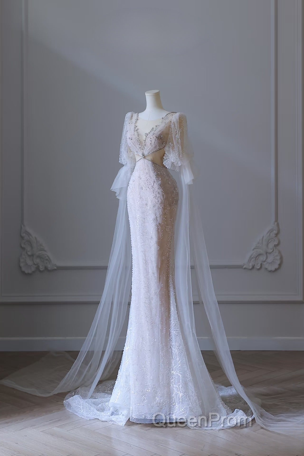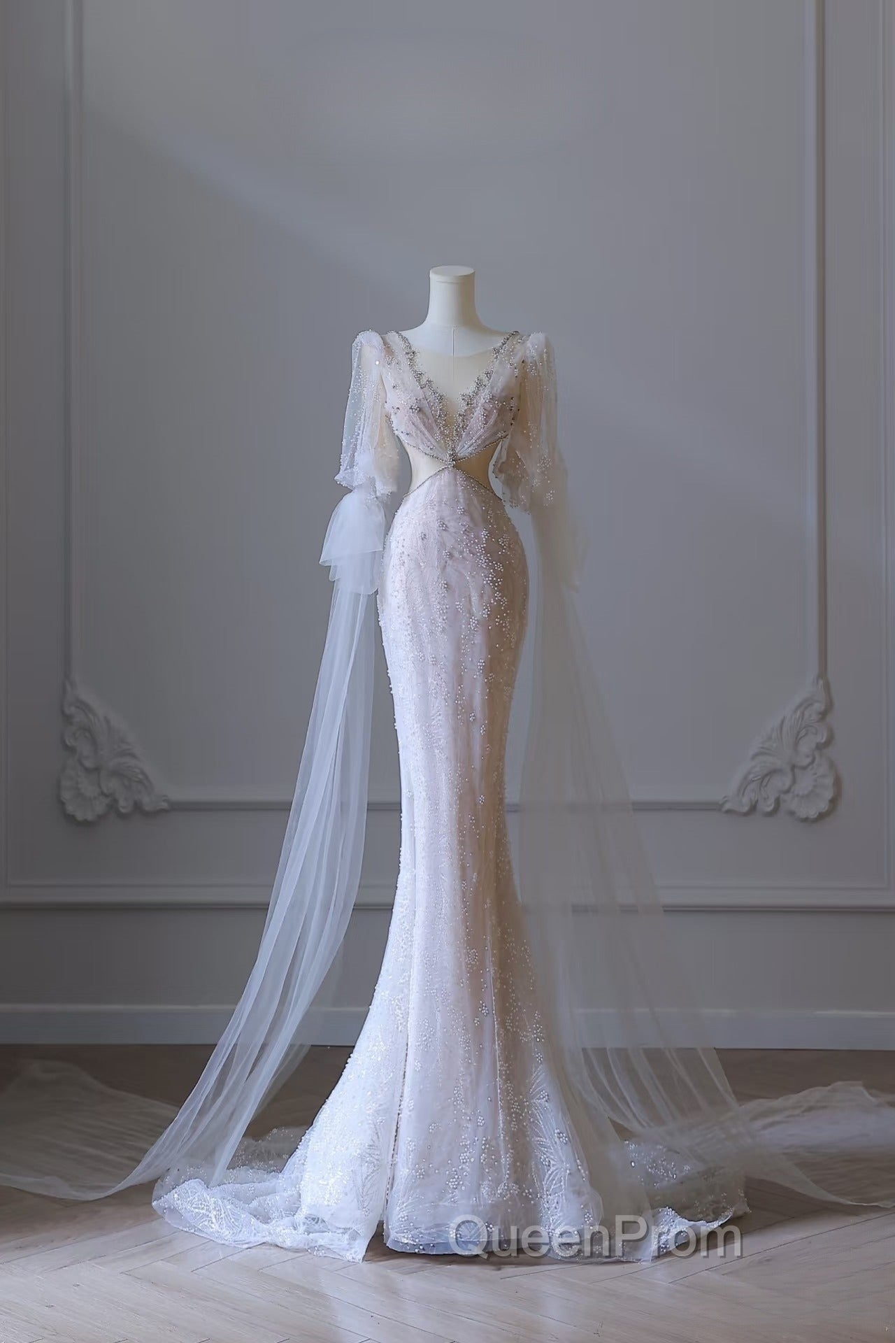 Pretty Mermaid Long Sleeves Pink Evening Prom Dresses Evening Gowns