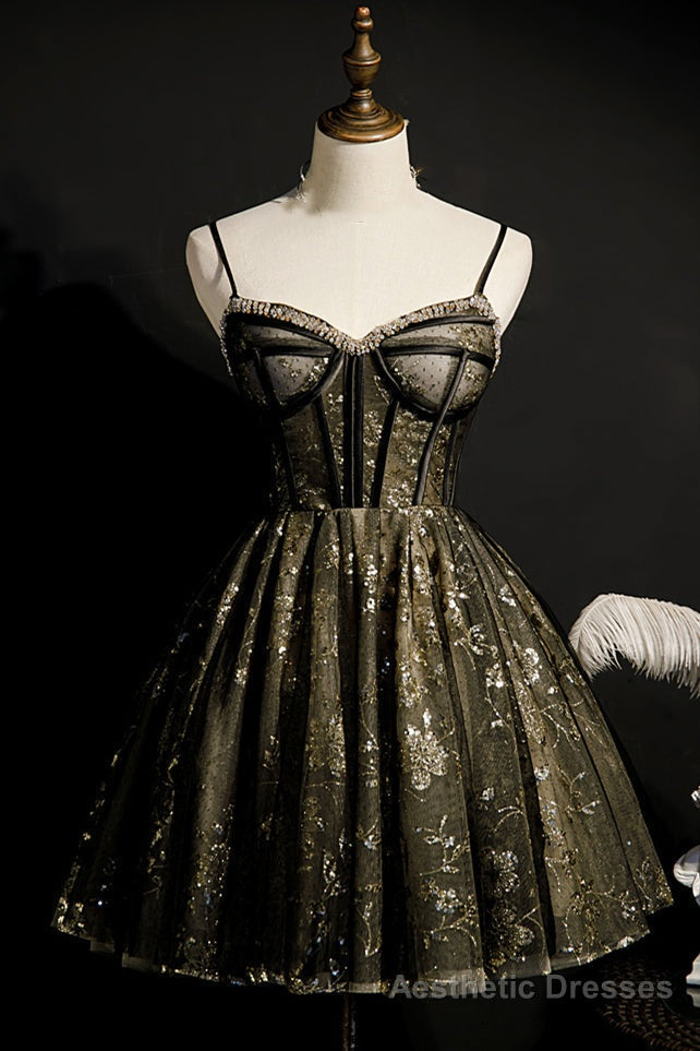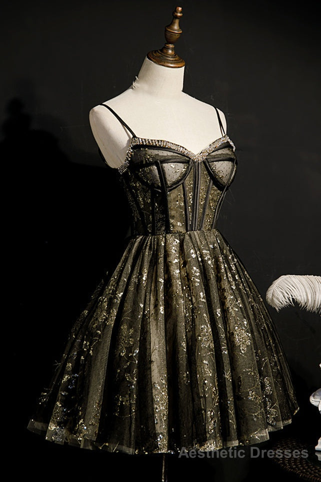 Princess A-Line Beaded Spaghetti Straps Short Party Dress