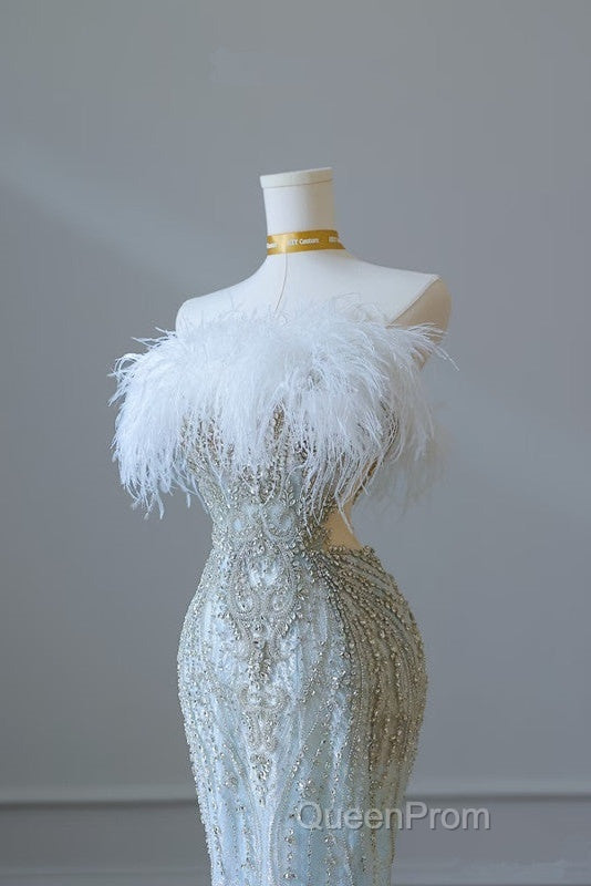 Princess Mermaid Strapless Neckline Long Sequin Light Sky Blue Long Wedding Dresses Brides Dresses