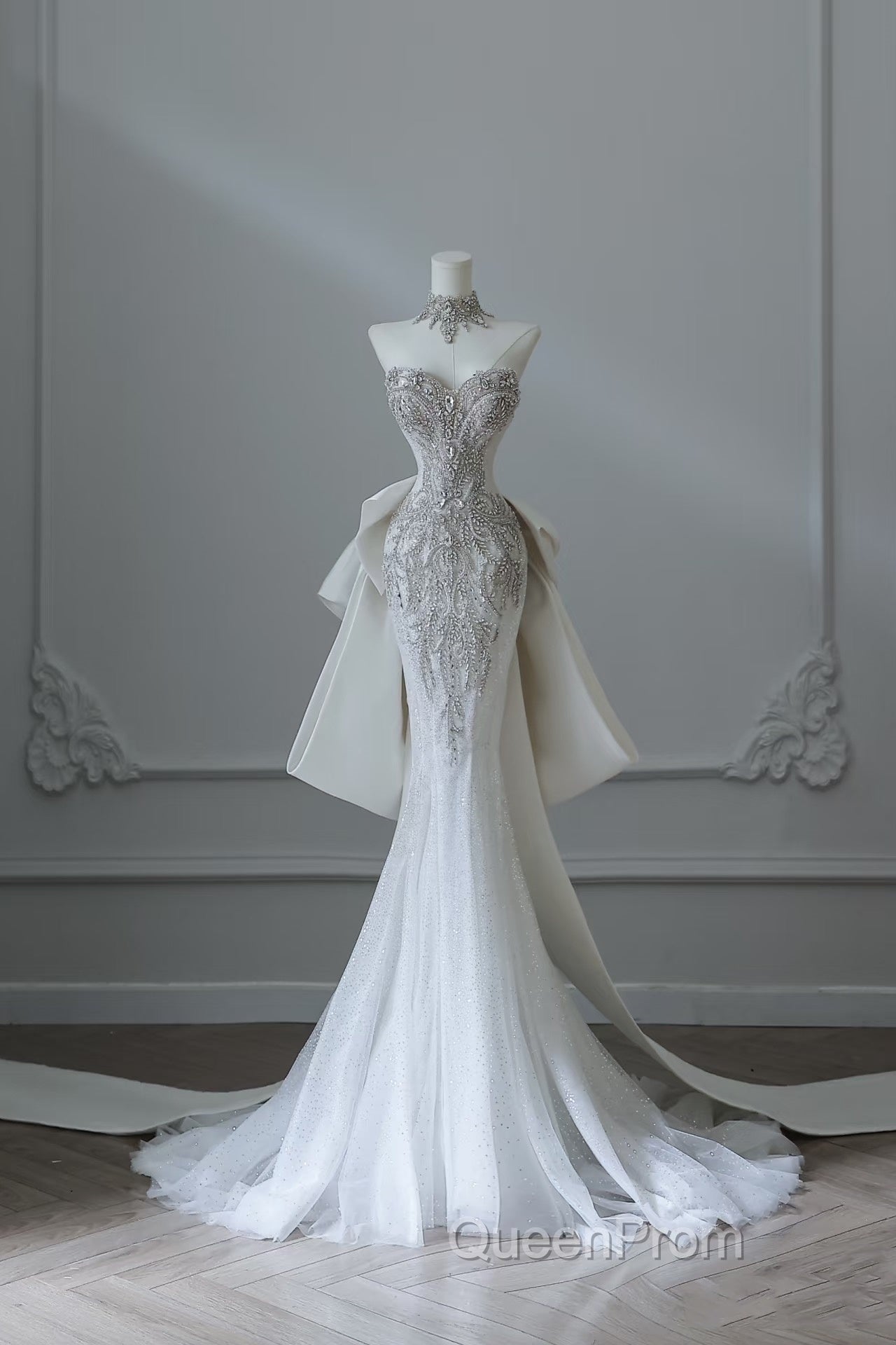 Princess Mermaid Sweetheart White Tulle Long Wedding Dresses Brides Dresses