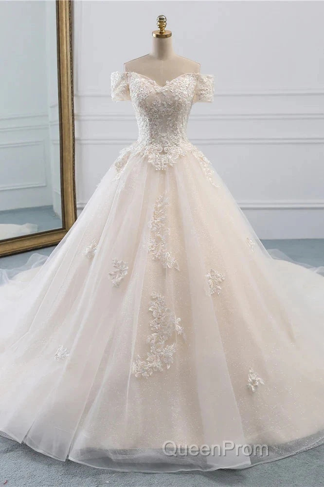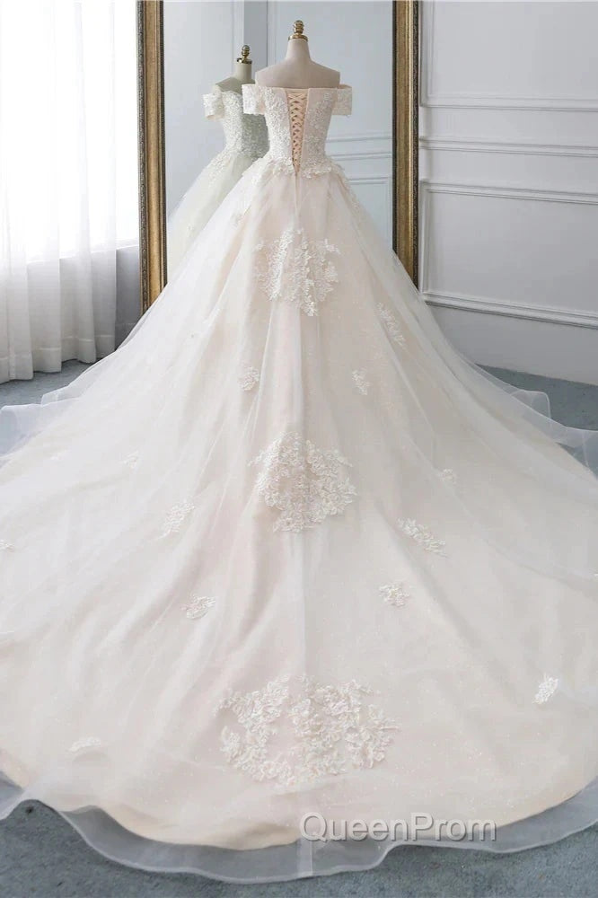 Princess Off The Shoulder Tulle Wedding Dresses With Lace Appliques Elegant Beautiful