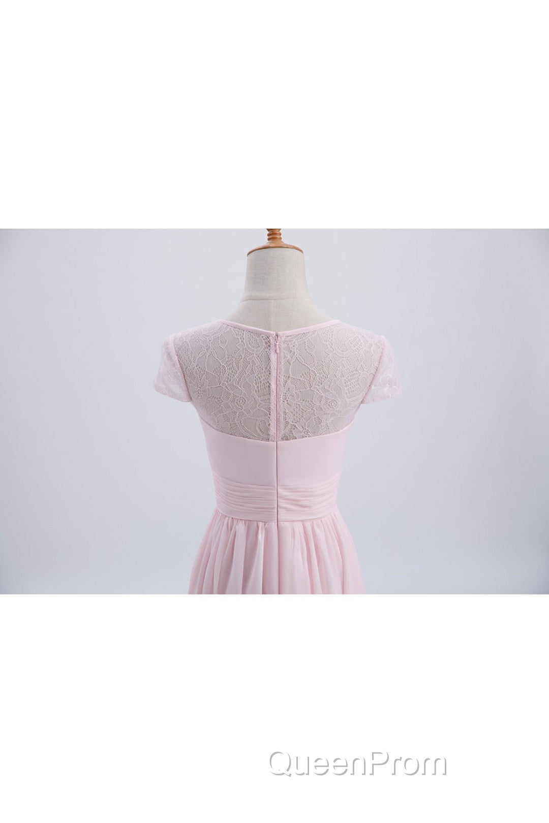 Princess Pink Chiffon and Lace Short Sleeves Bridesmaid Dresses