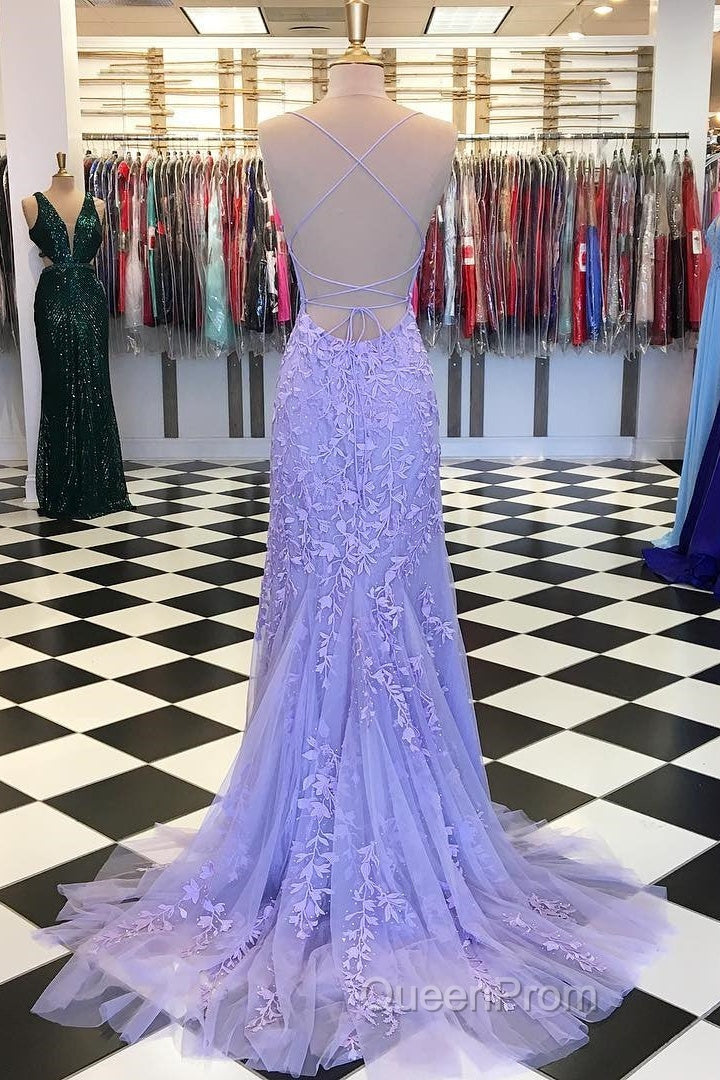 Purple/Blue Mermaid Backless Lace Evening Prom Dresses, Purple/Blue Mermaid Backless Lace Formal Graduation Evening Dreses