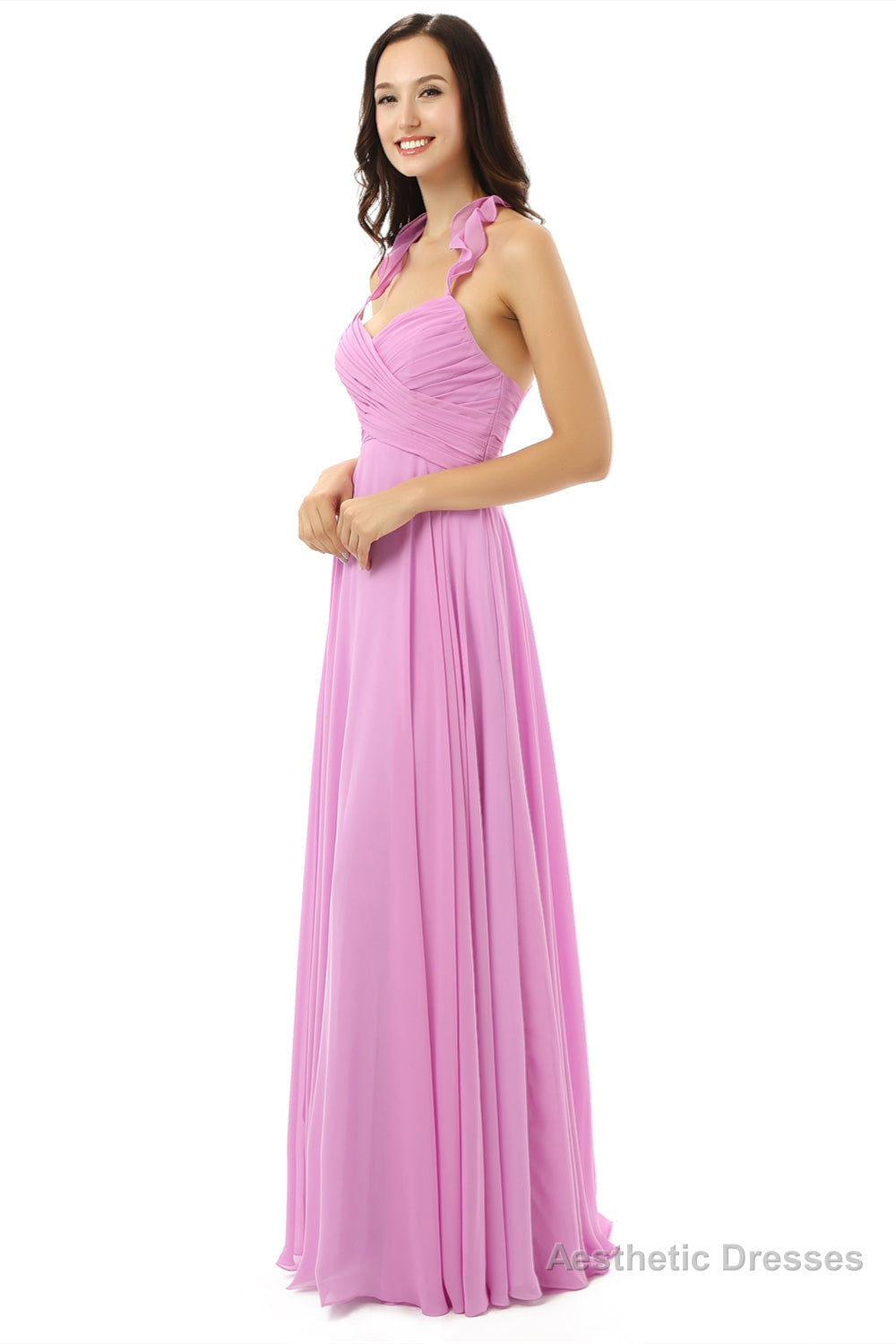 Purple Chiffon Halter Backless With Pleats Bridesmaid Dresses