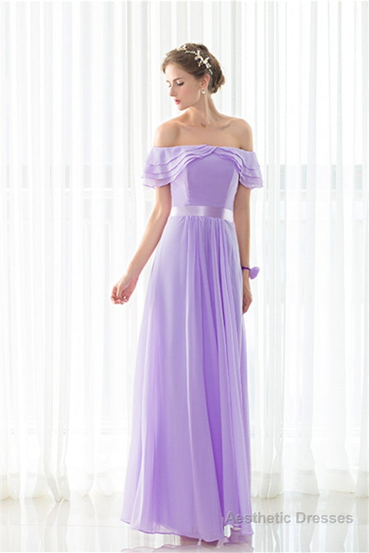Purple Chiffon Off The Shoulder Long Bridesmaid Dresses
