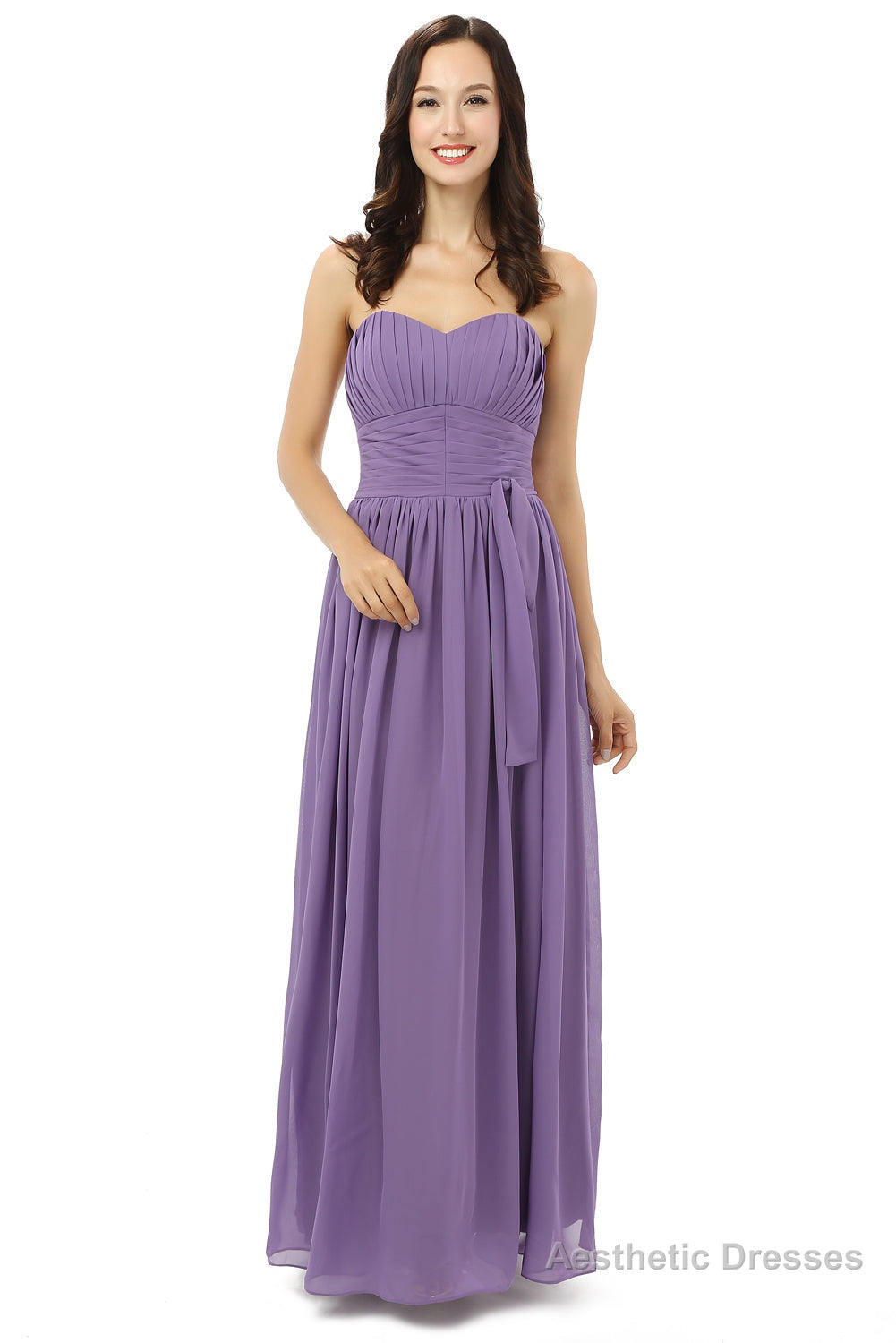 Purple Sleeveless Chiffon Long With Lace Up Bridesmaid Dresses
