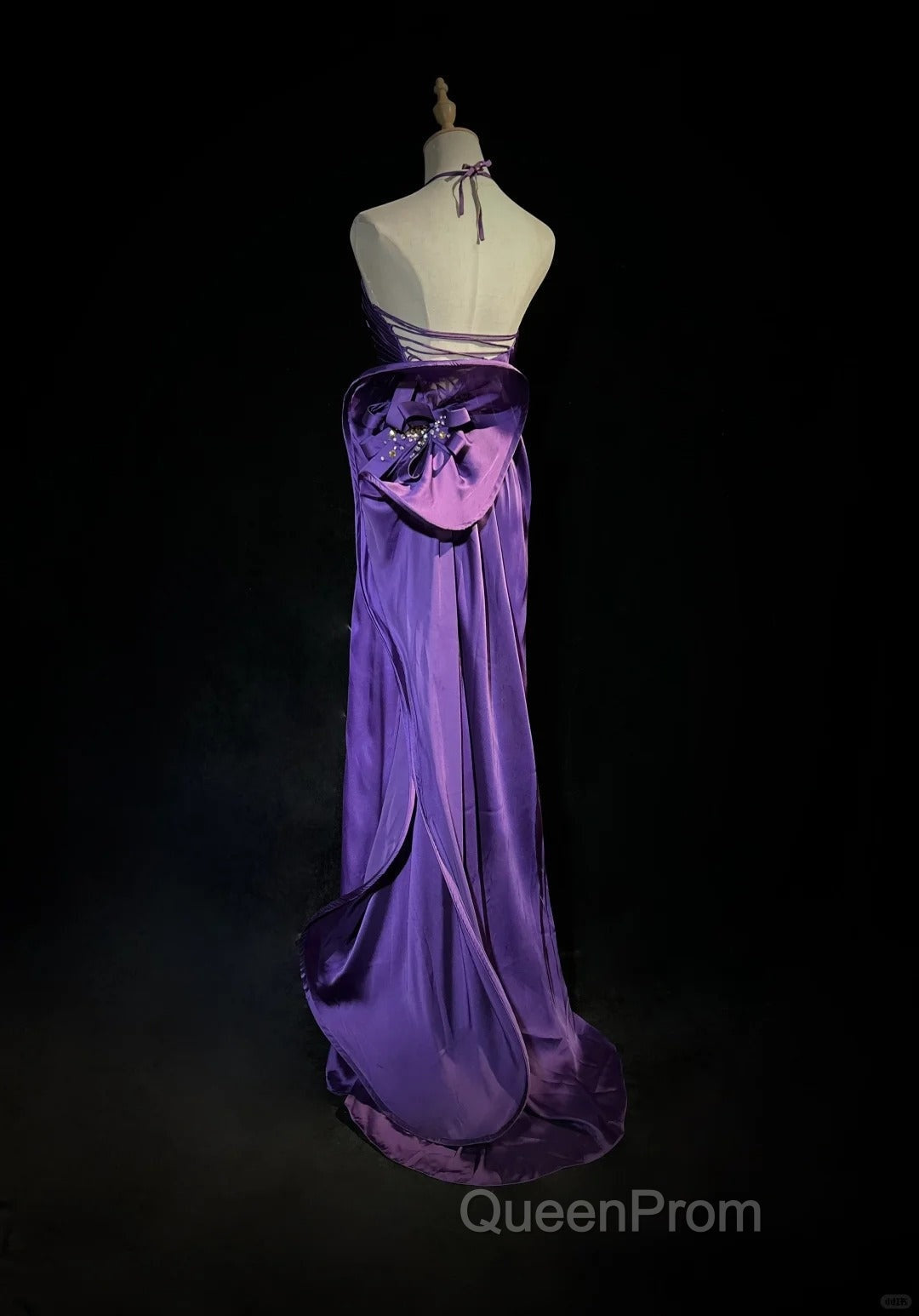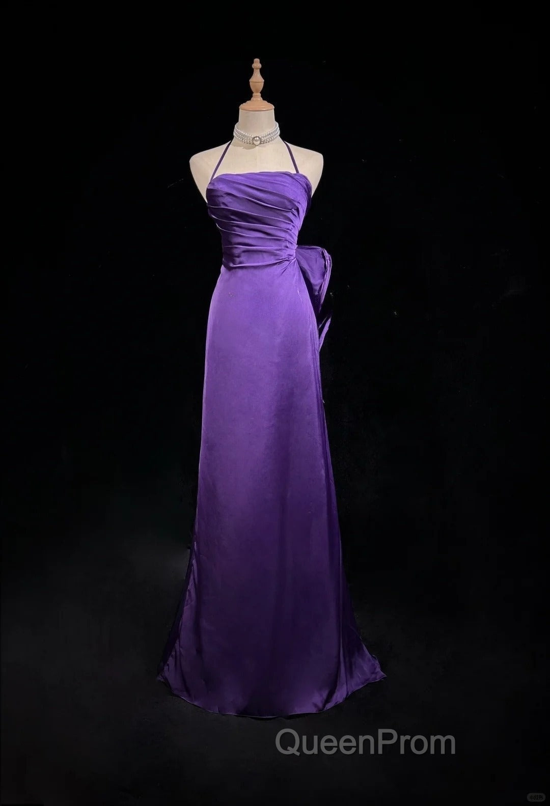 Purple Spaghetti Strap Satin Evening Prom Dresses Backless Evening Gown