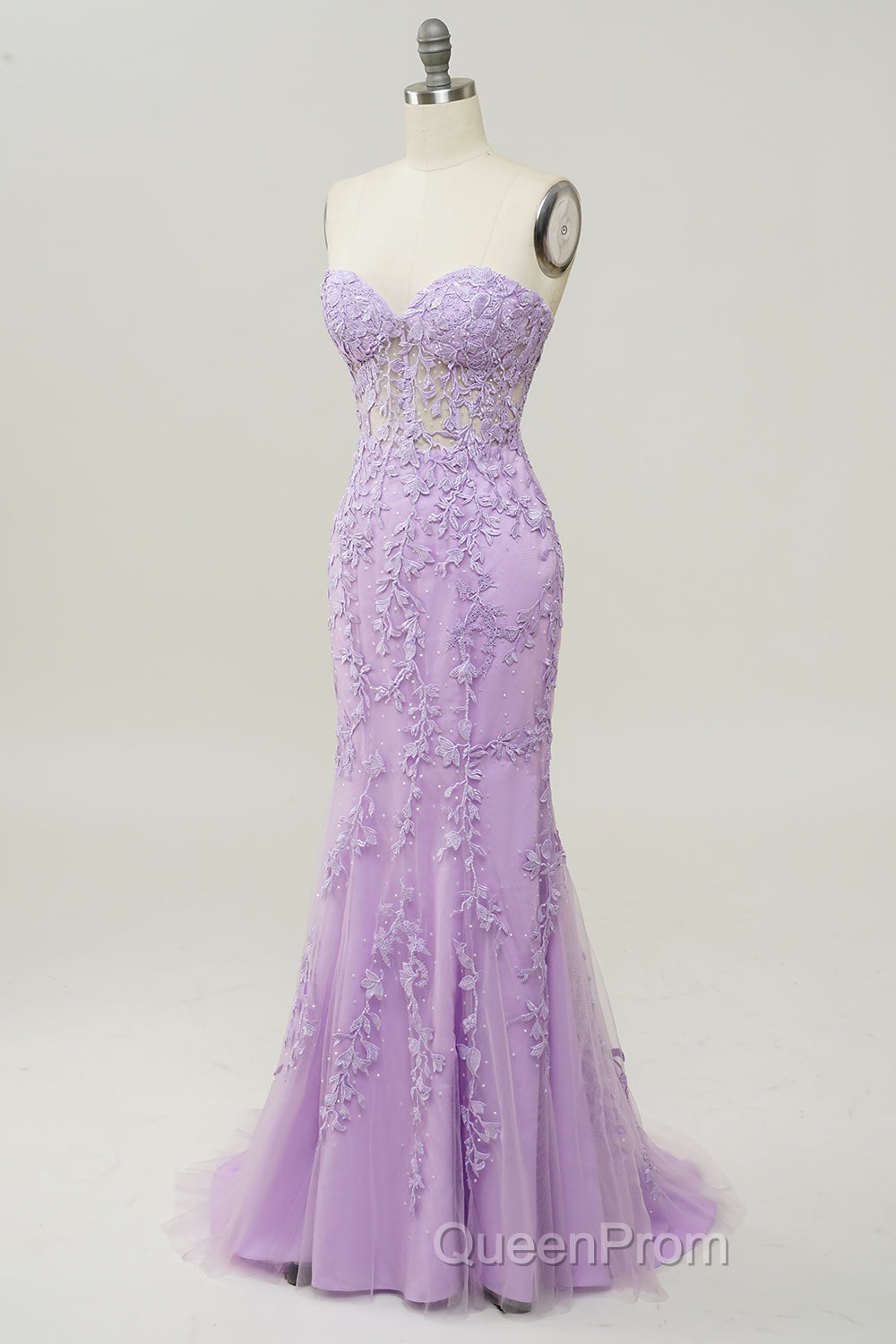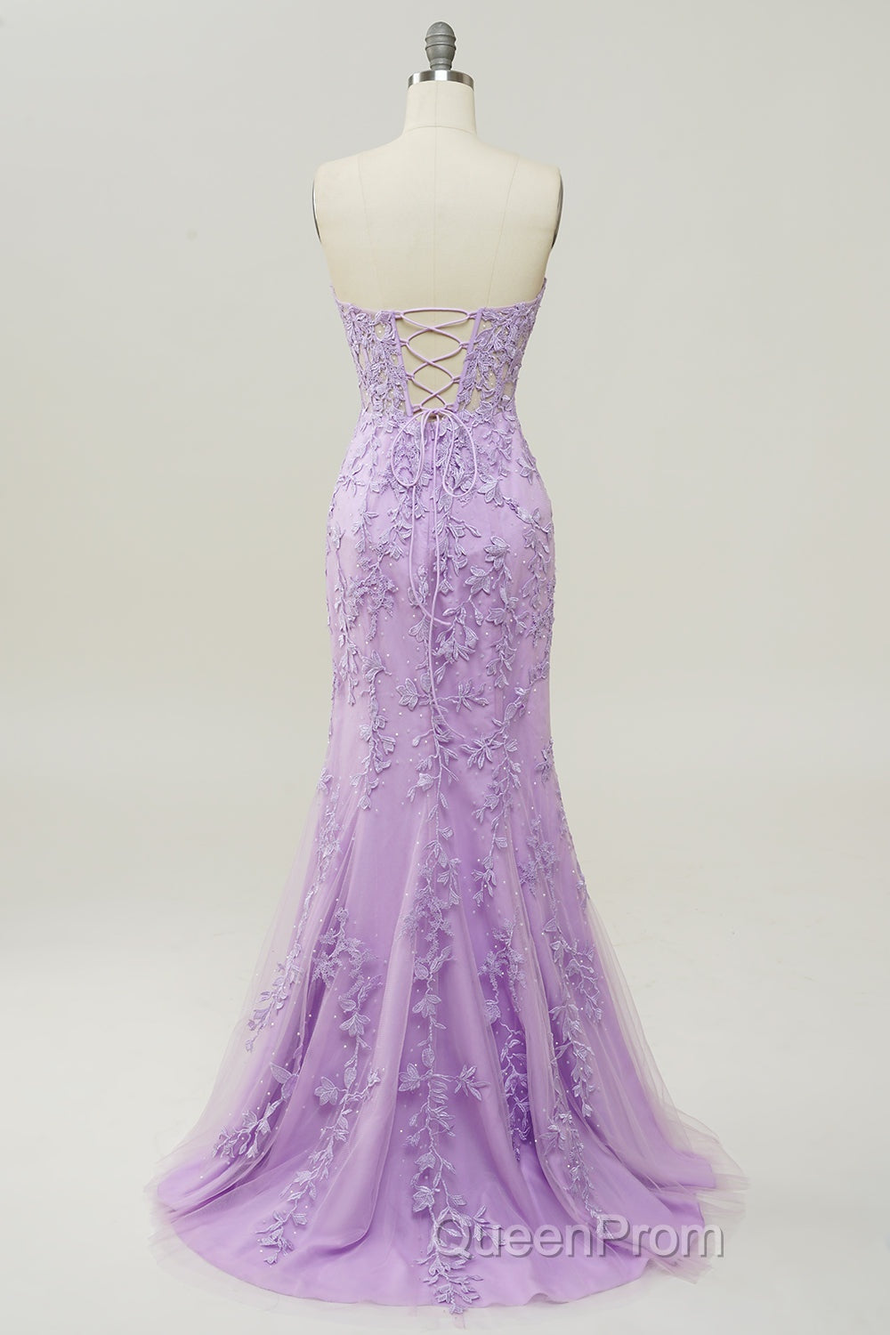 Purple Sweetheart Neck Mermaid Evening Prom Dresses With Appliques