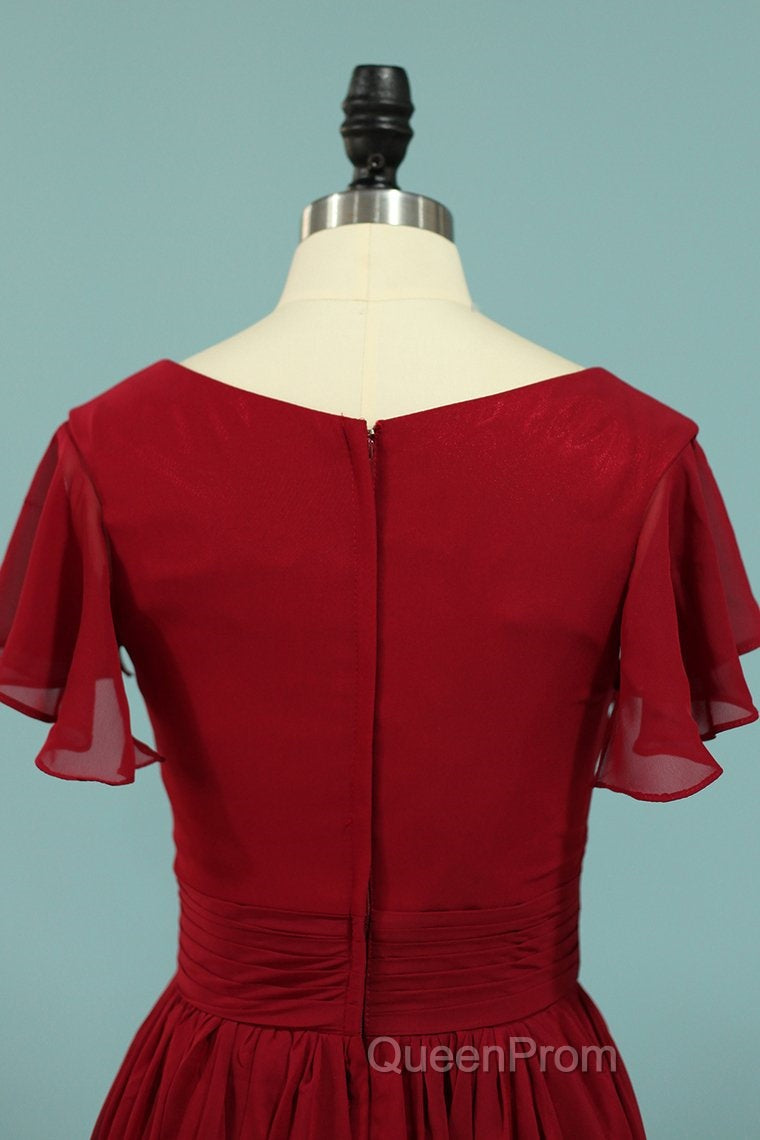 Red Chiffon V-Neck Ruffled A-Line Long Bridesmaid Dresses
