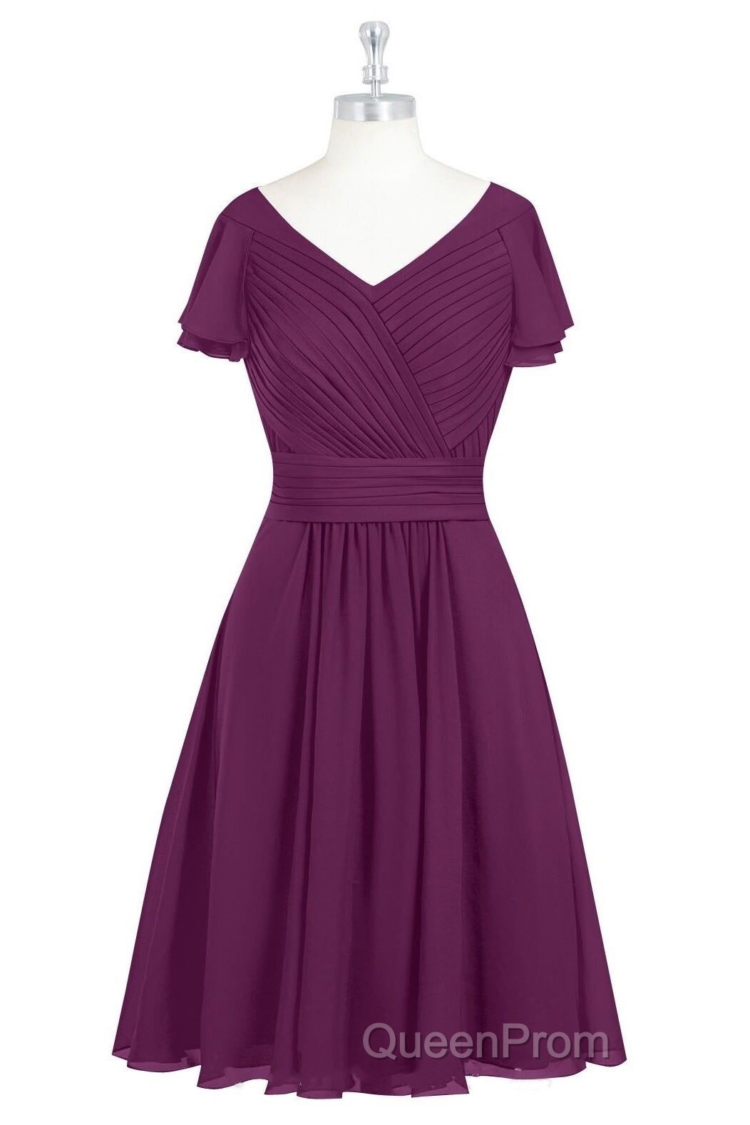 Red Chiffon V-Neck Ruffled A-Line Short Bridesmaid Dresses