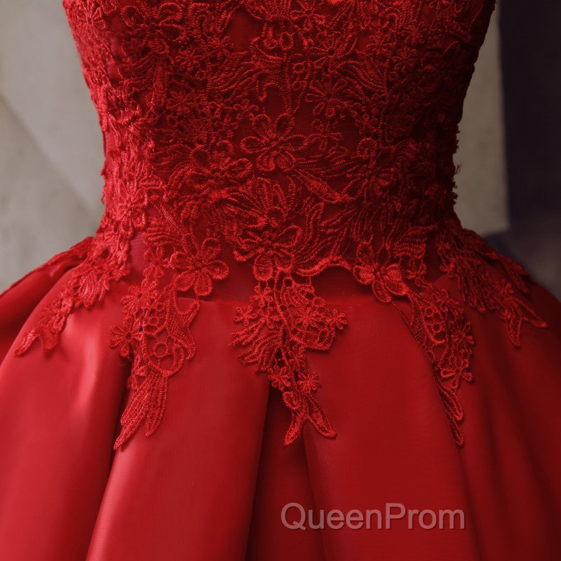 Red Round Neckline Layers Short Evening Prom Dresses, Red Lace Homecoming Dresses