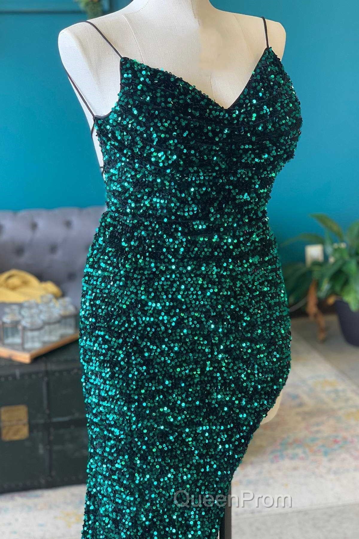 Red Sequin Cowl Neck Lace-Up Back High-Low Evening Prom Dresses