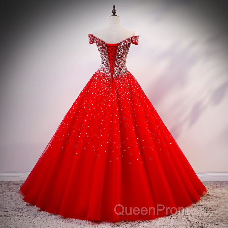 Red Sparkle Tulle Sweetheart Party Dresses, Shiny Sweet 16 Dresses