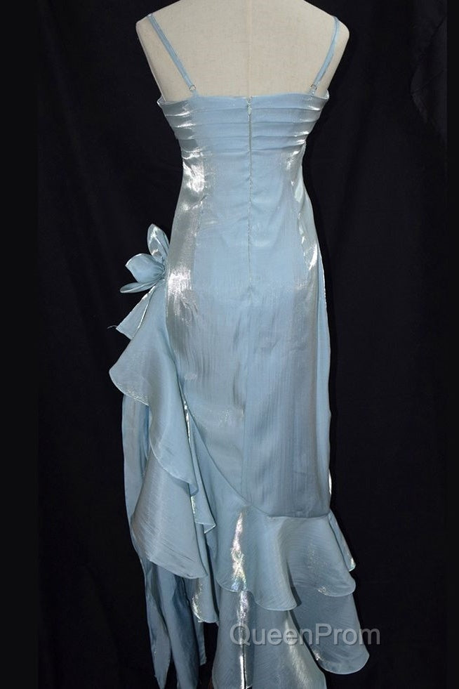 Retro Baby Blue Vintage Floral Dresses Asymmetrical Hem Evening Prom Gown