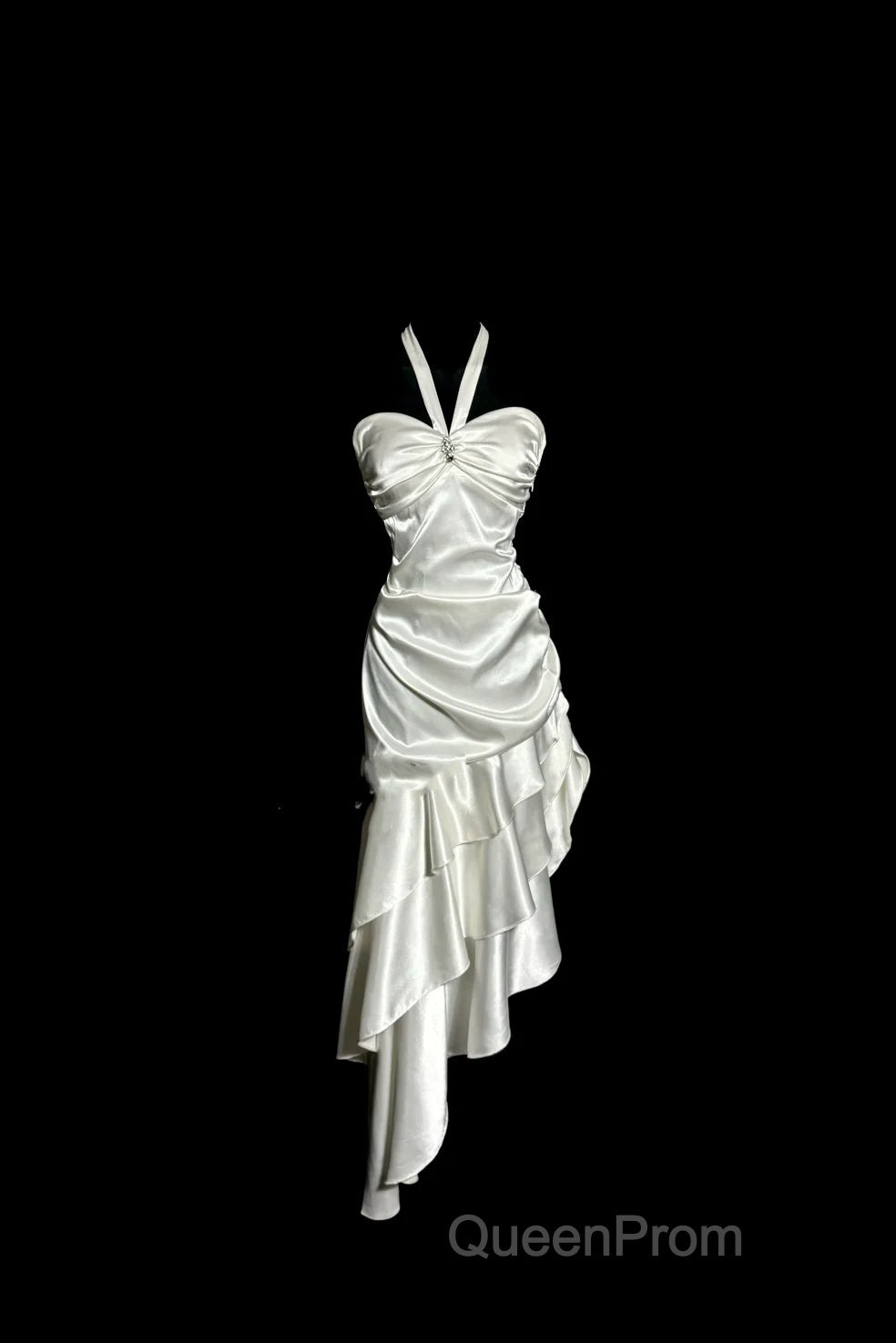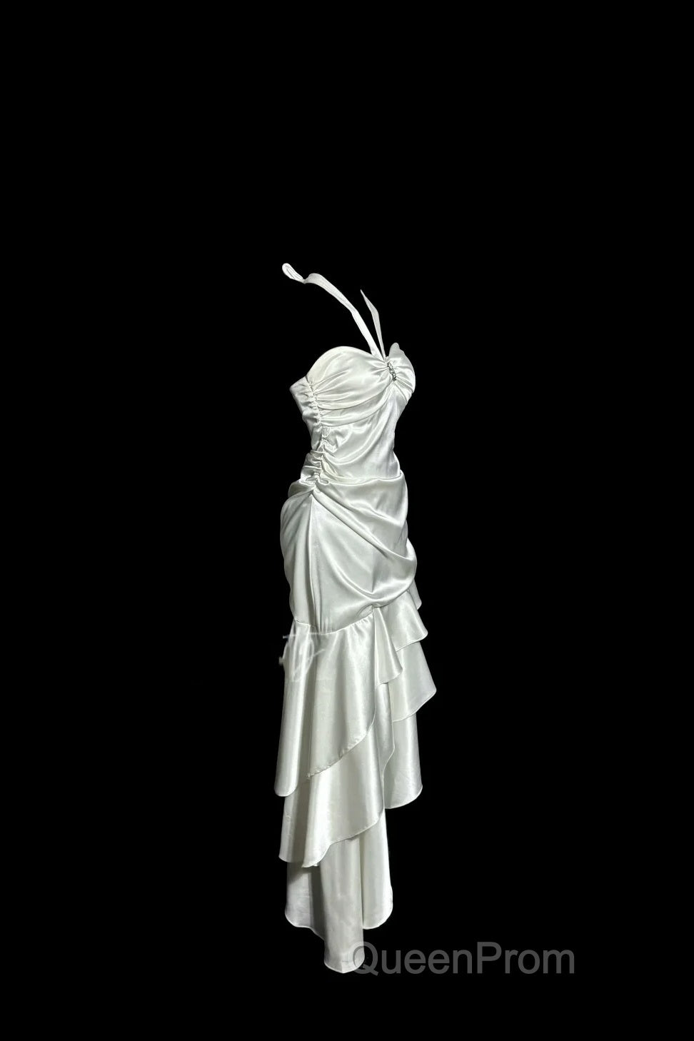 Retro Mermaid Halter Satin High Low Evening Dresses Evening Prom Dresses