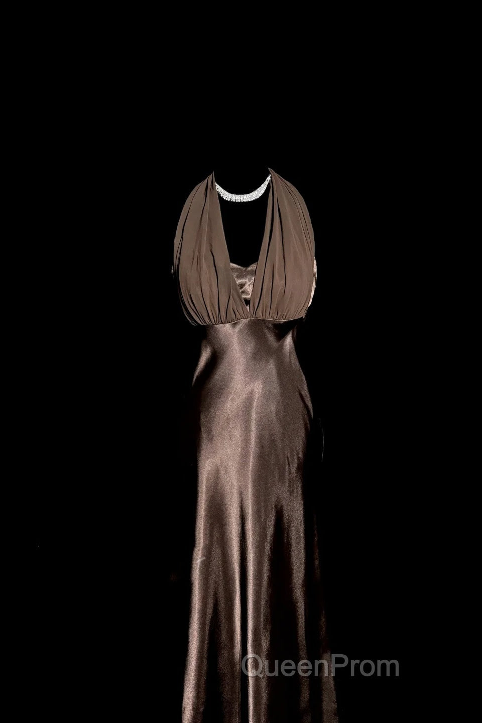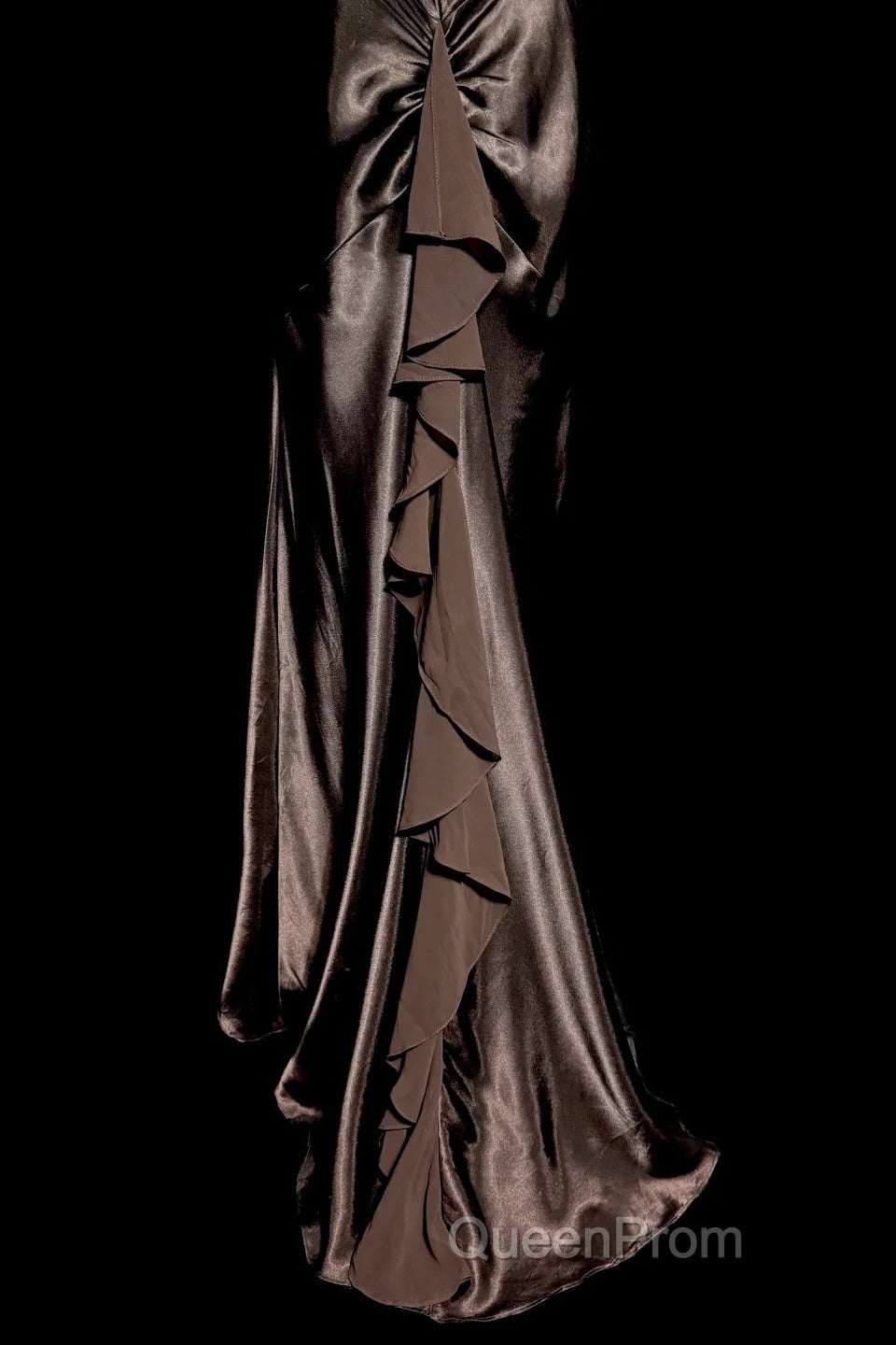Retro Mermaid V Neckline Chiffon Brown Evening Dresses Evening Prom Dresses